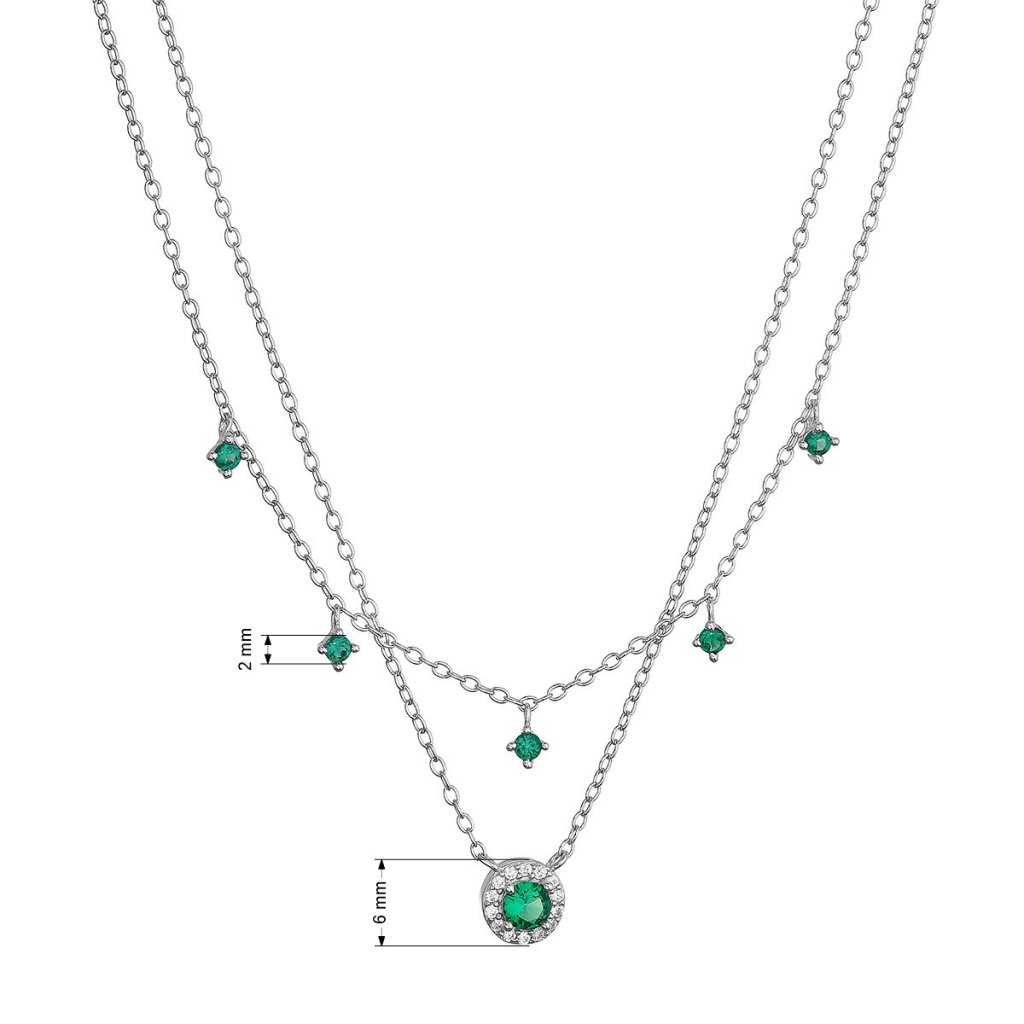 Stříbrný náhrdelník dvojitý se zelenými zirkony 12186.3 emerald