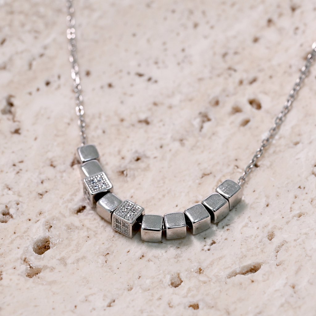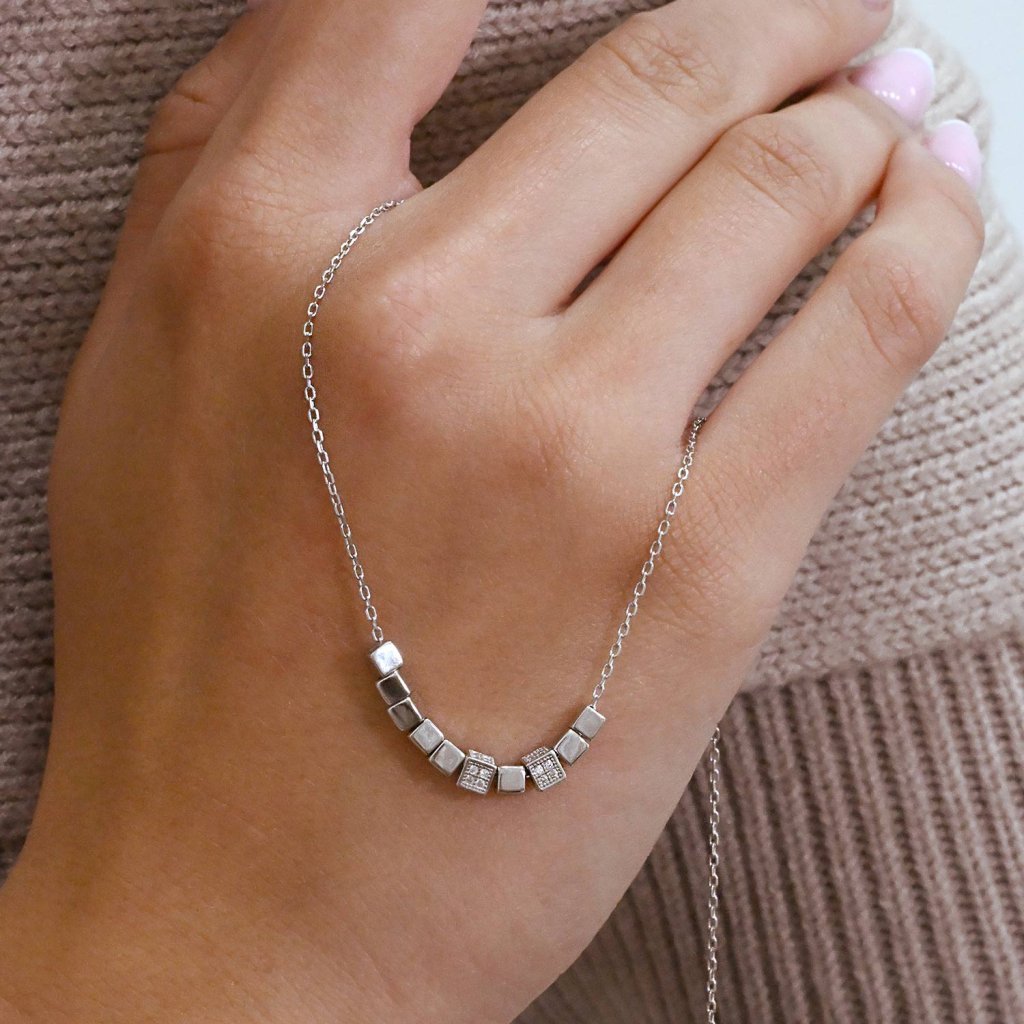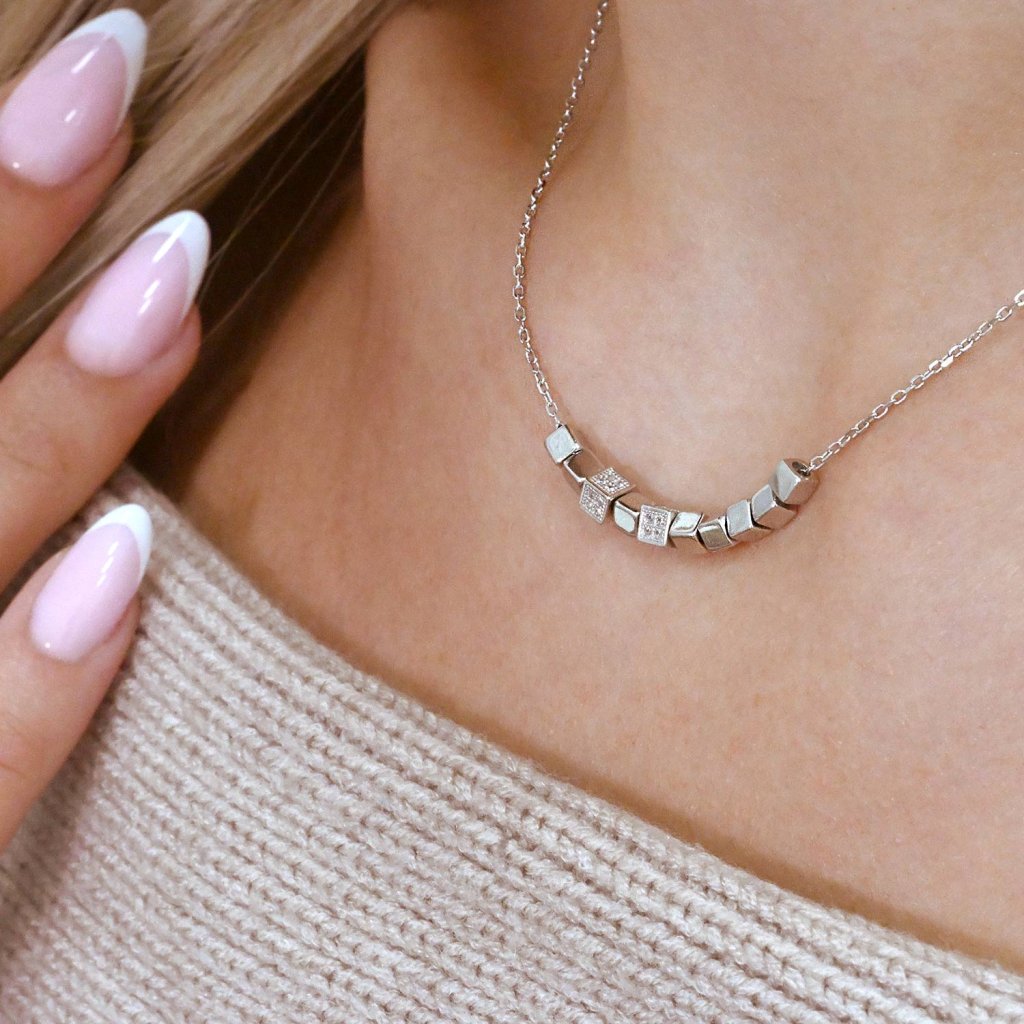 Stříbrný náhrdelník kostičky na řetízku se zirkony 12071.1