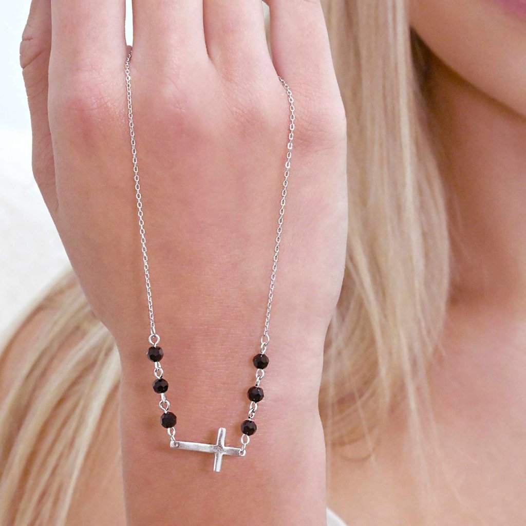 Stříbrný náhrdelník křížek s černými korálky 12119.3