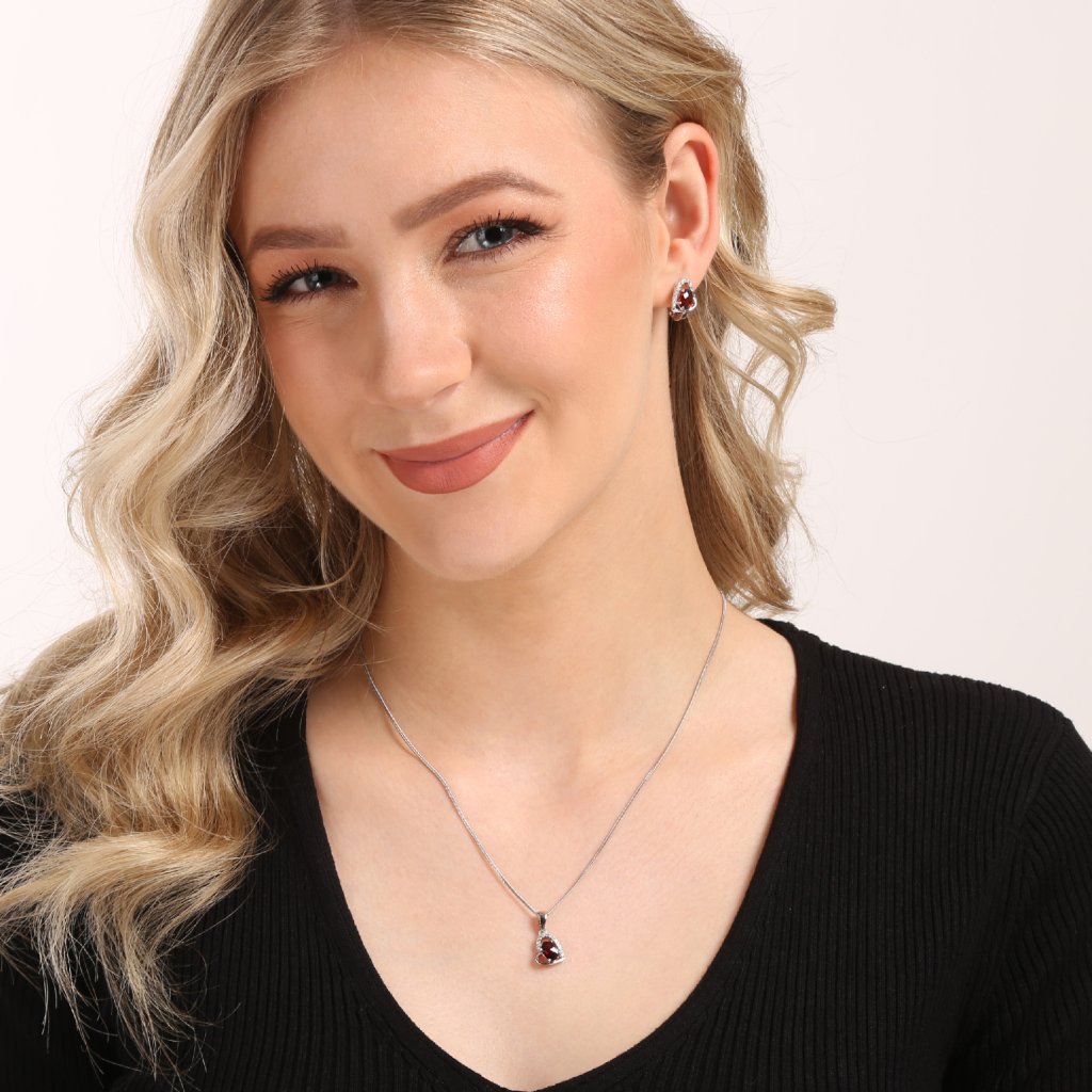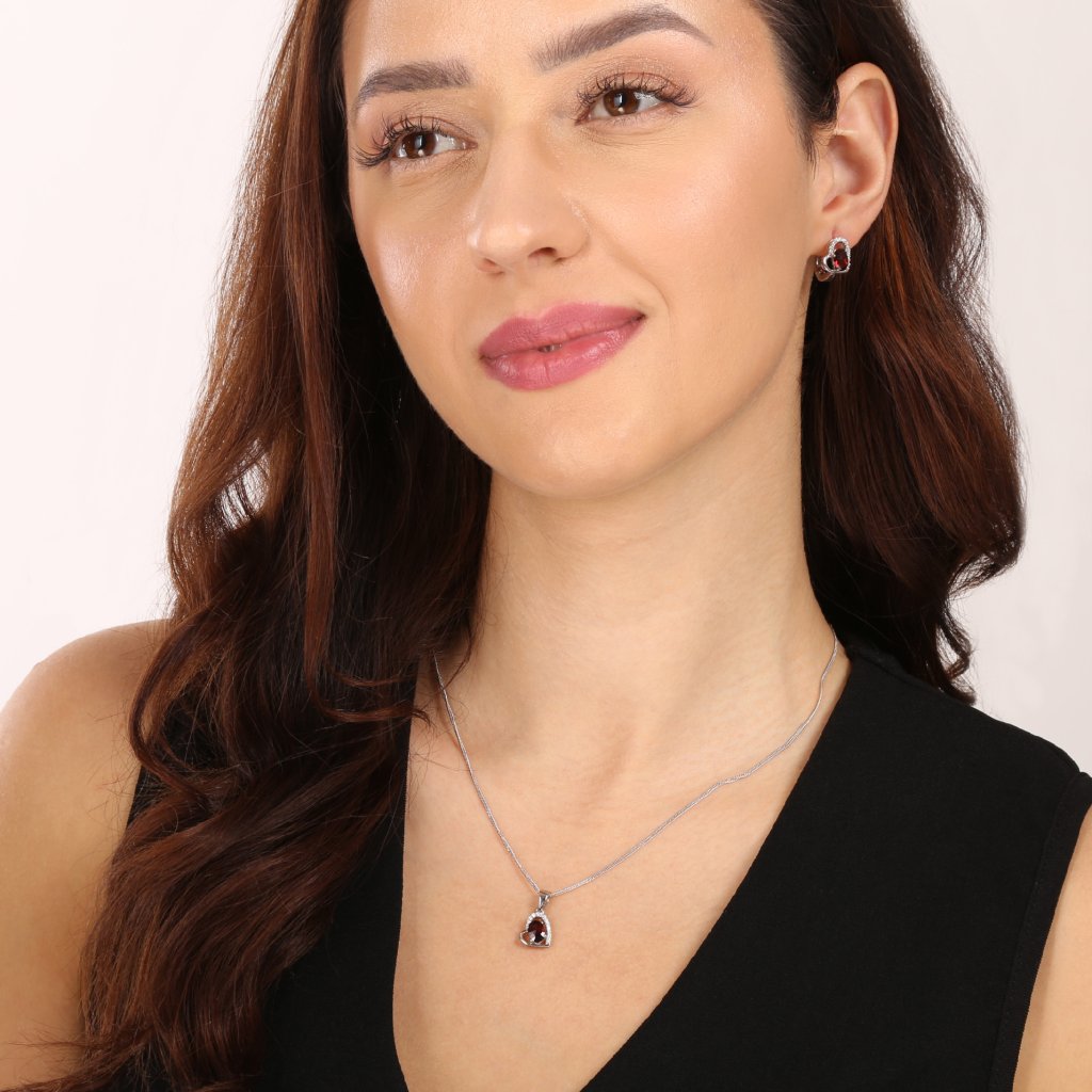 Udělejte radost své manželce nebo přítelkyni s tímto stříbrným náhrdelníkem ve tvaru srdce s granátem uprostřed.