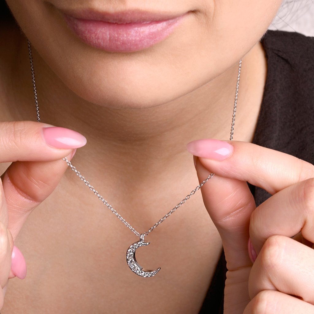 Stříbrný náhrdelník půlměsíc se zirkony 12176.1
