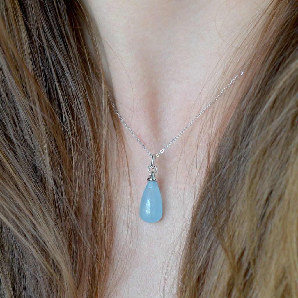 Jemný stříbrný řetízek ryzosti 925/1000 nese luxusní přívěsek ve tvaru protáhlé kapky osazený vzácným přírodním akvamarínem v intenzivní sytě modré barvě. Kámen připomínající hladinu oceánu v sobě ukrývá tajemství a klid mořských hlubin.