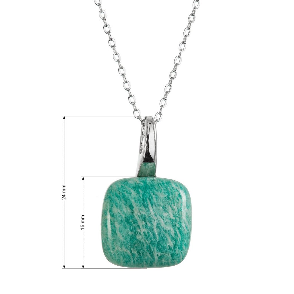 Náhrdelník s přívěskem je uměleckým dílem, které zachycuje dechberoucí krásu přírodní divočiny. Prémiové stříbro ryzosti 925/1000 s povrchovou úpravou rhodiem, které chrání šperk před oxidací a poškrábáním, nese luxusní přívěsek osazený čtvercovým přírodním amazonitem v sytě zelené barvě s charakteristickým žíháním. Každý kámen je naprosto originální, stejně jako vy.
