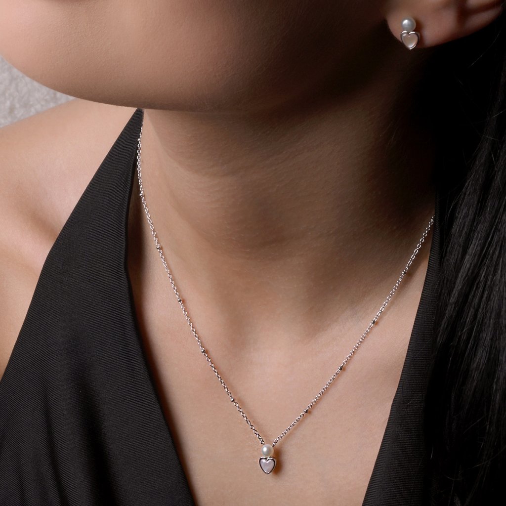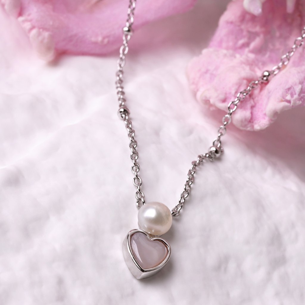Stříbrný náhrdelník s říční perlou srdíčko 22055.1