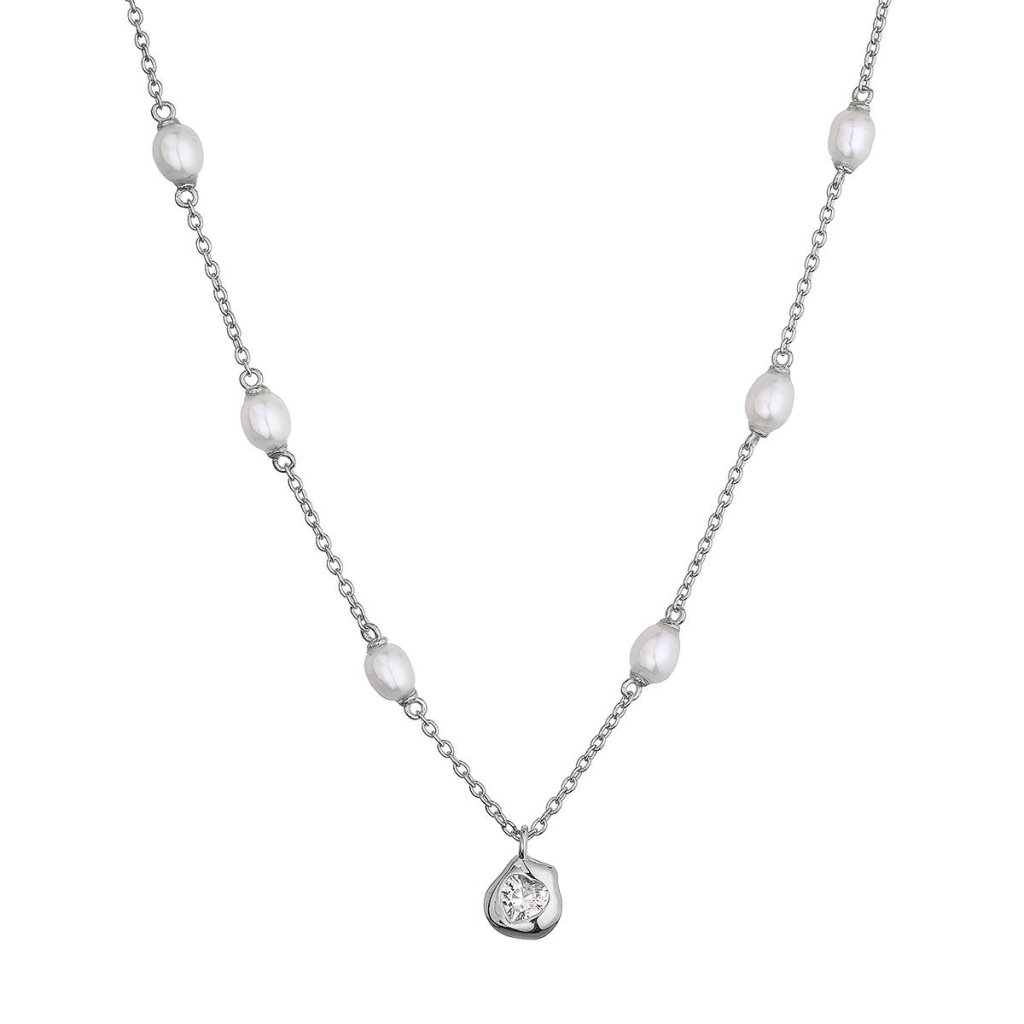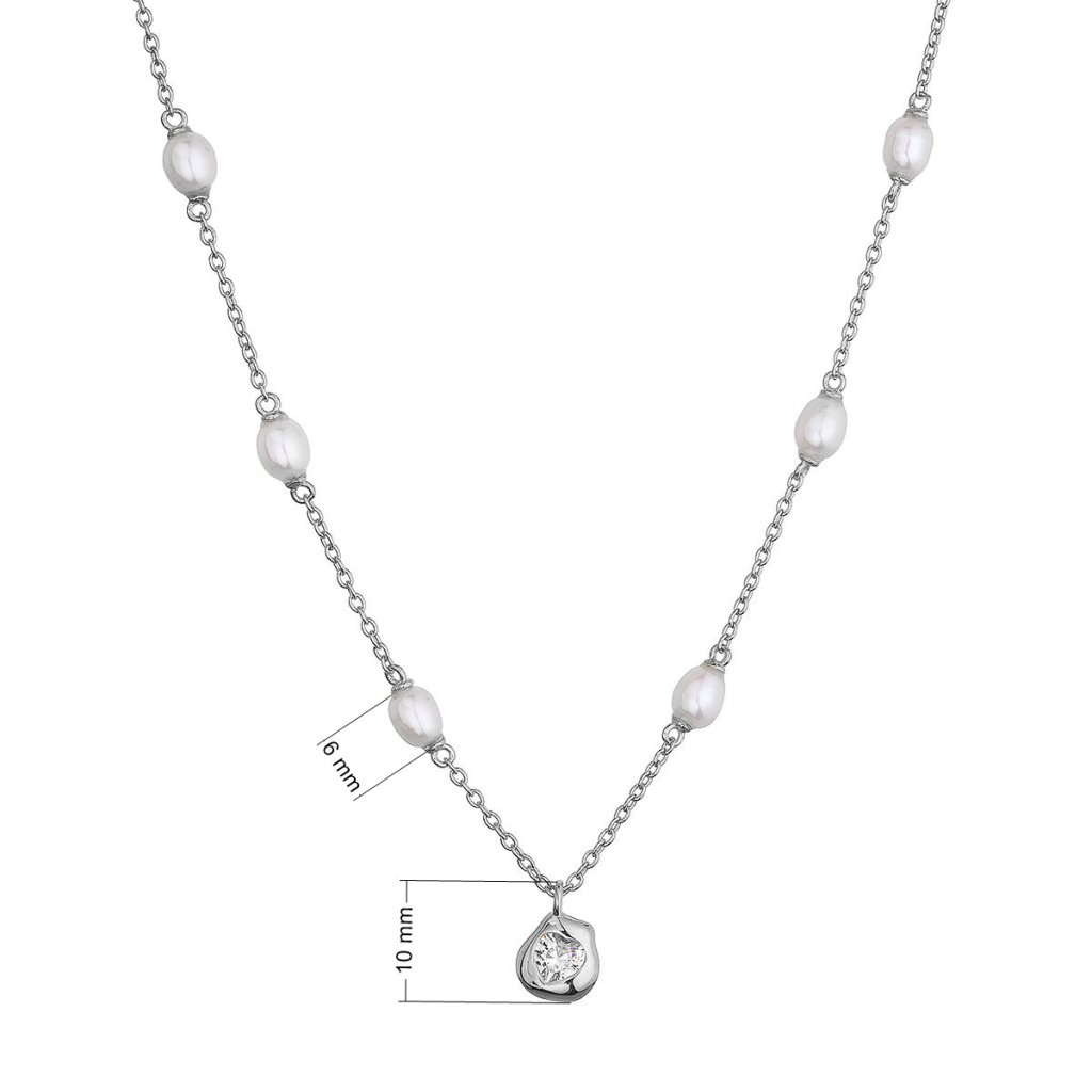 Stříbrný náhrdelník s říčními perlami a srdíčkem 22058.1