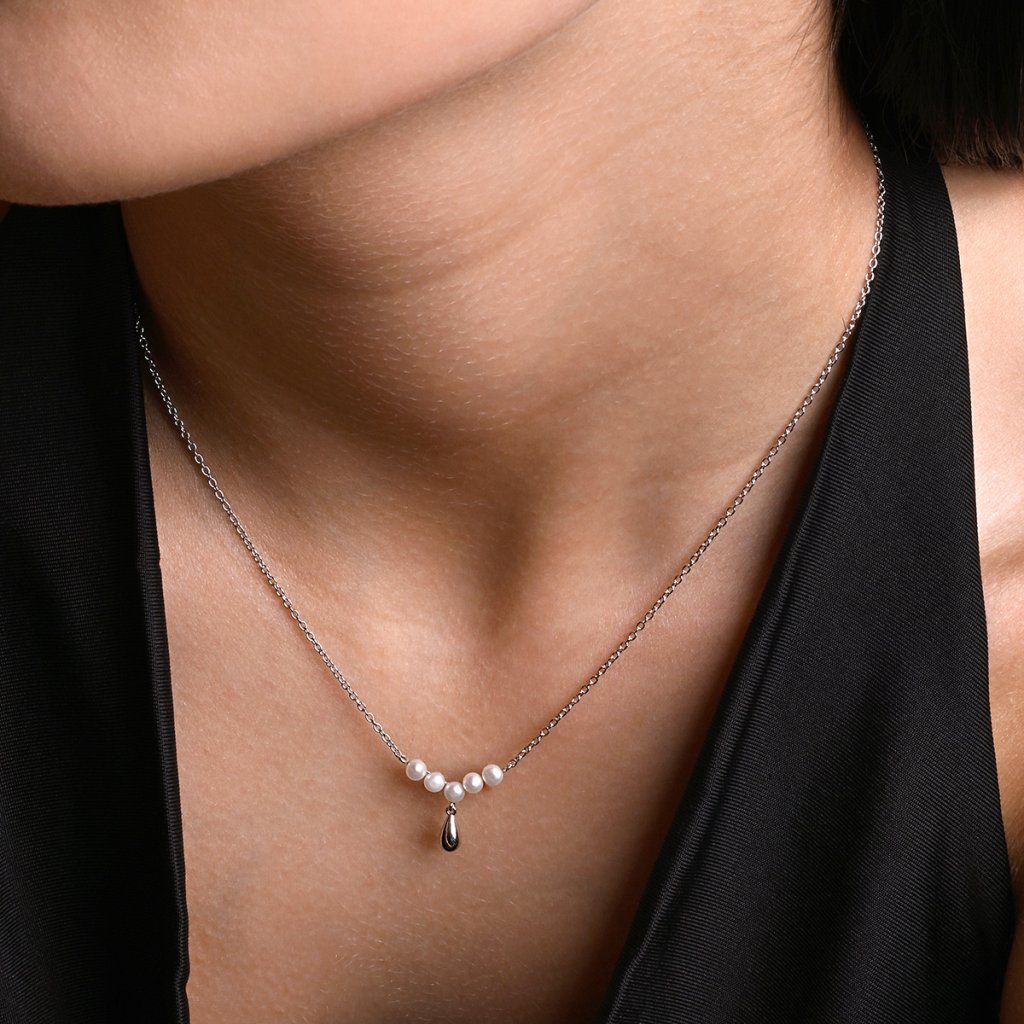 Stříbrný náhrdelník s říčními perličkami 22059.1
