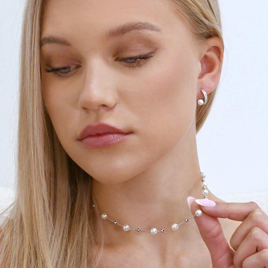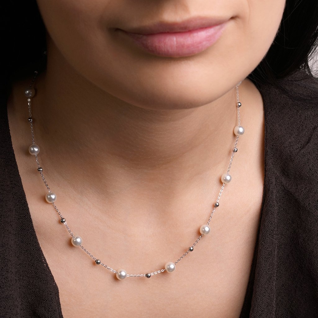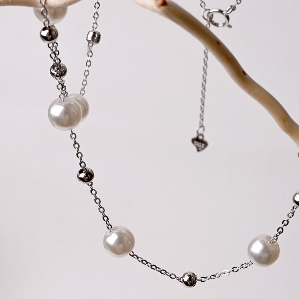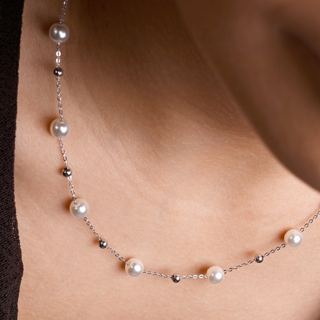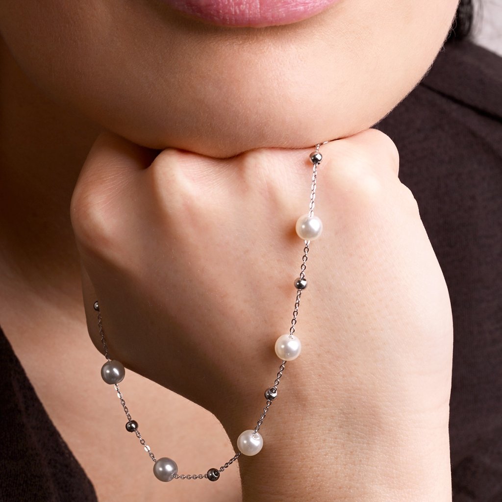 Stříbrný náhrdelník s shell perličkami 12184.1