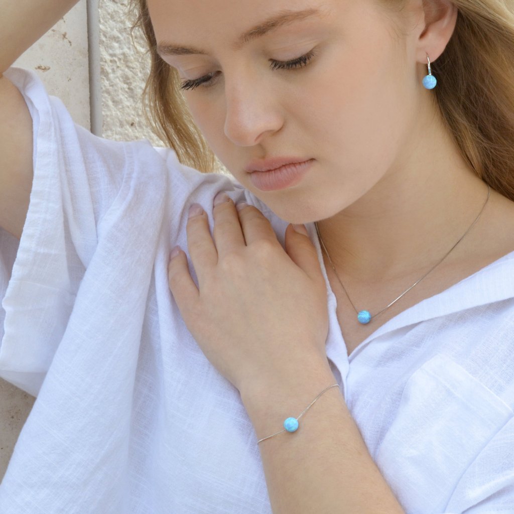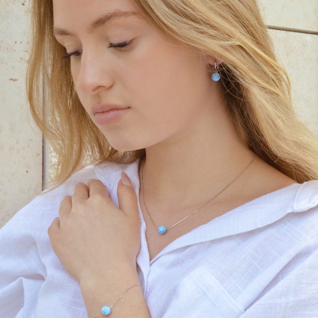 Parametry stříbrného náhrdelníku se syntetickým opálem světle modrý kulatý 12044.3 lt. blue