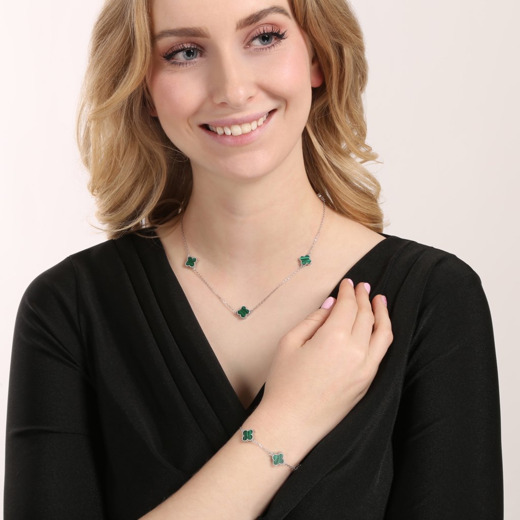 Stříbrný náramek čtyřlístky malachit 13089.3