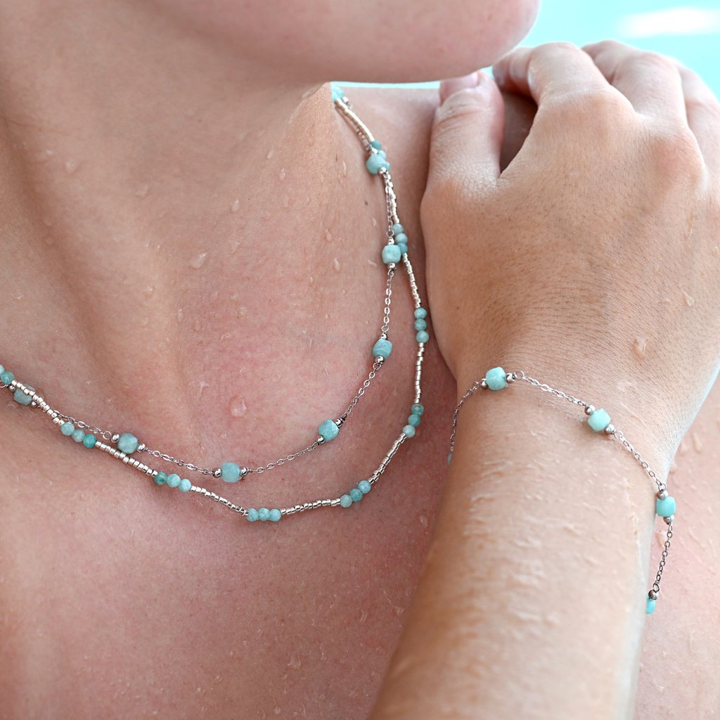 Jemný stříbrný náramek s drobnými fazetovanými amazonity v nádherné mentolově zelené barvě.