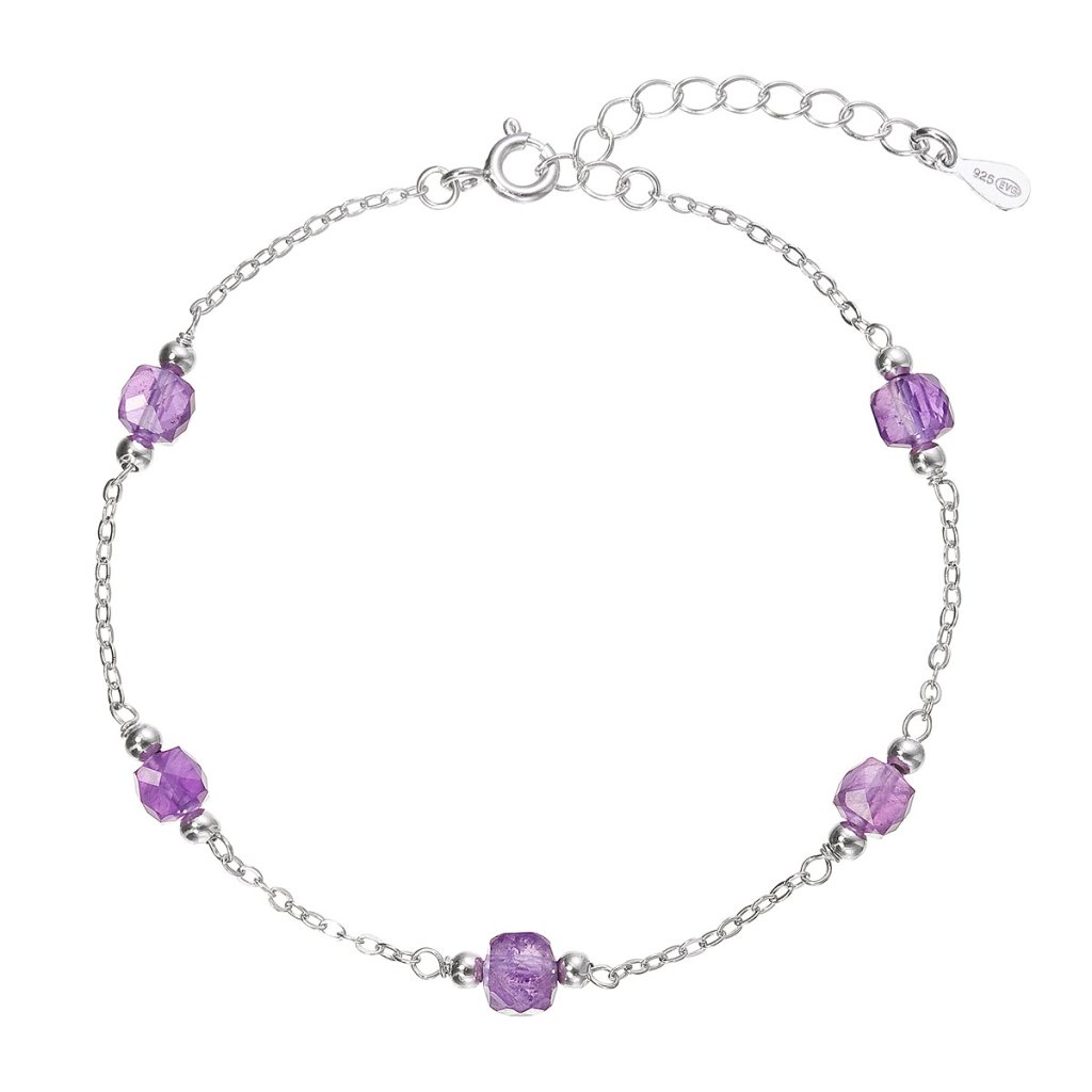 Jemný stříbrný náramek s drobnými fazetovanými ametysty v nádherné fialové barvě.