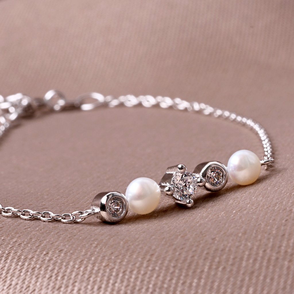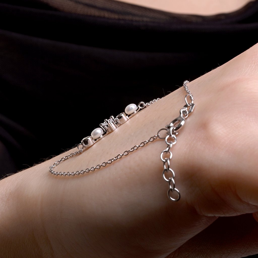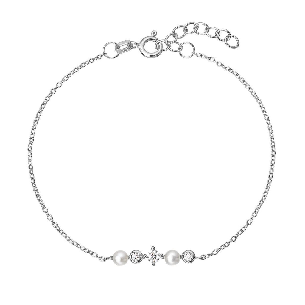 Stříbrný náramek s říčními perličkami a zirkony 23031.1