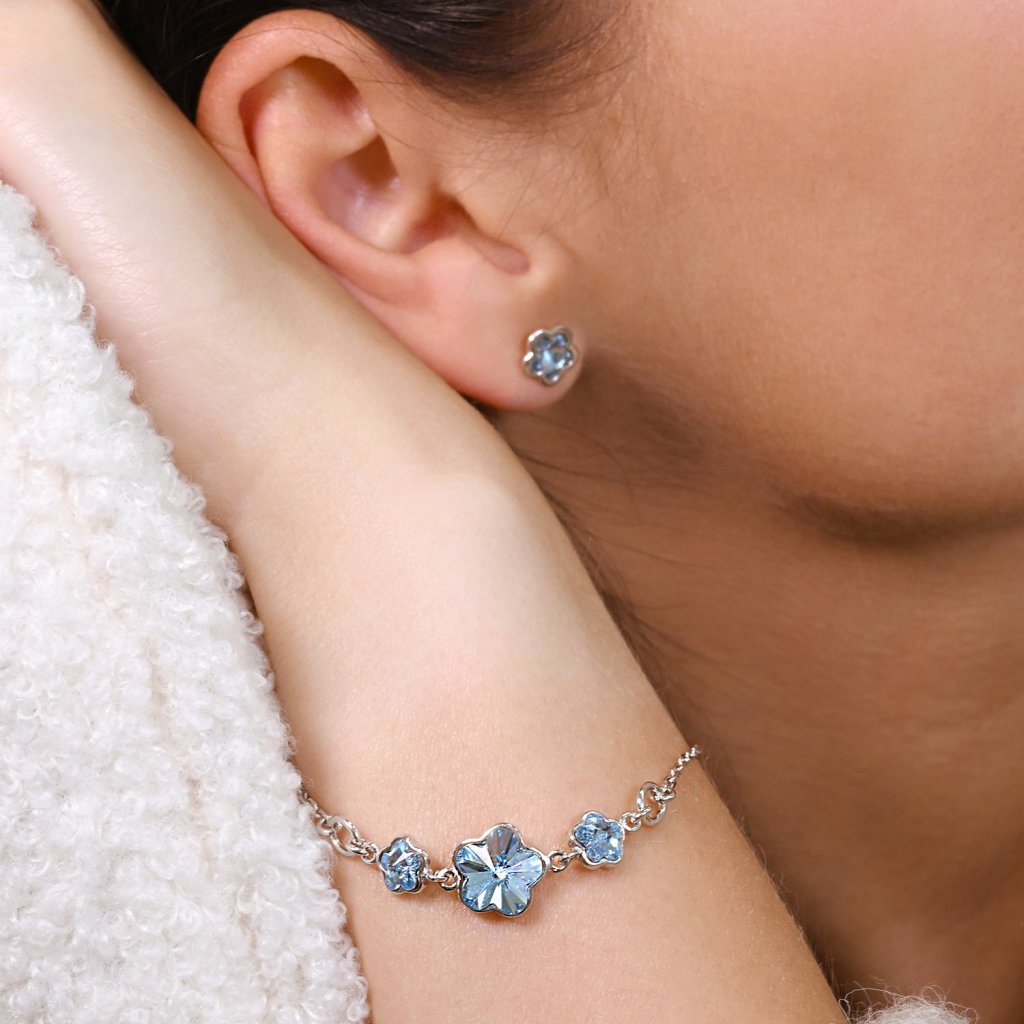 Stříbrný náramek se Swarovski krystaly modrá kytička 33112.3