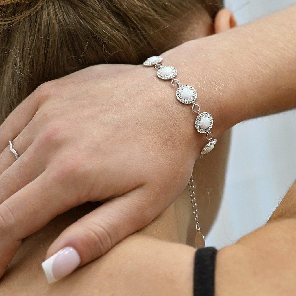 Parametry stříbrného náramku se syntetickým opálem a krystaly Preciosa bílý 33105.1