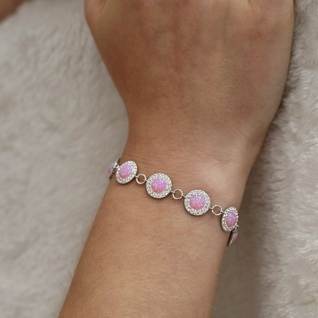 Stříbrný náramek se syntetickým opálem a krystaly Preciosa růžový 33105.1