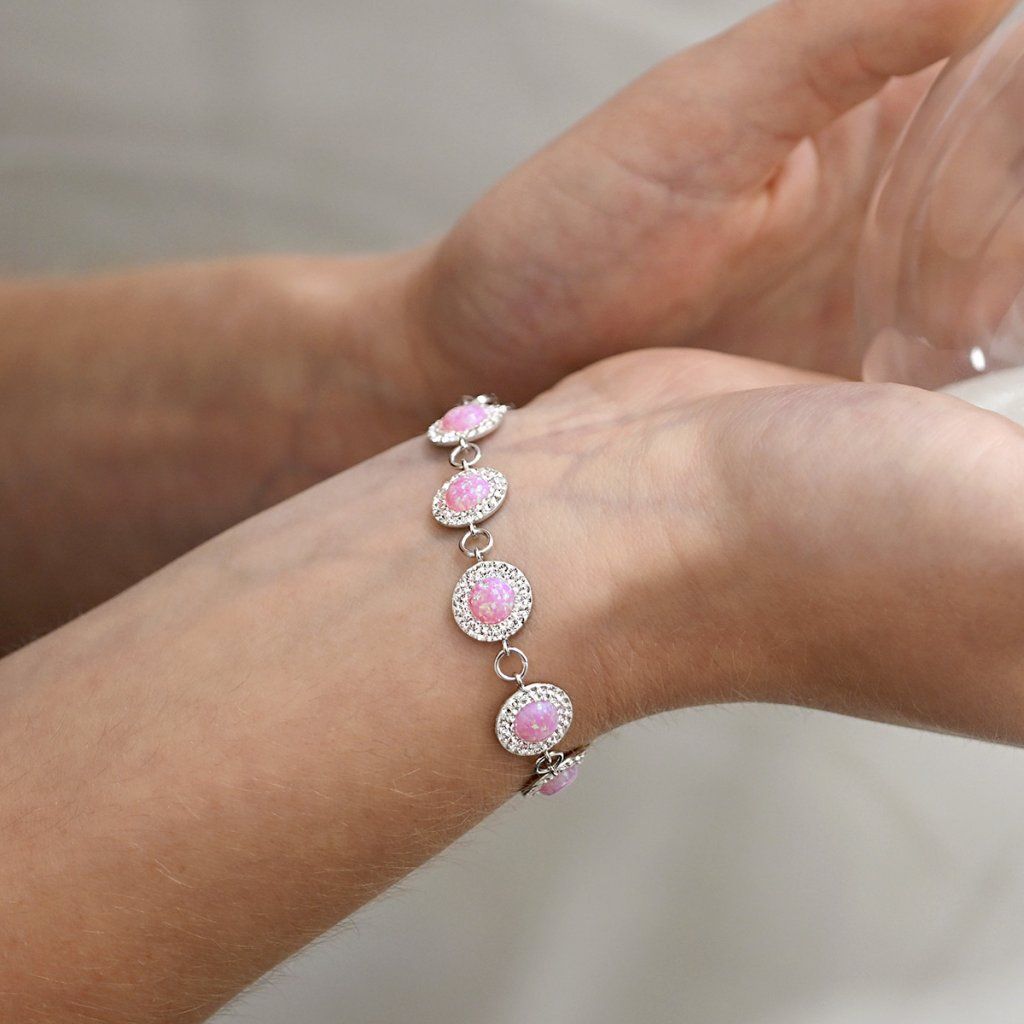 Parametry stříbrného náramku se syntetickým opálem a krystaly Preciosa růžový 33105.1