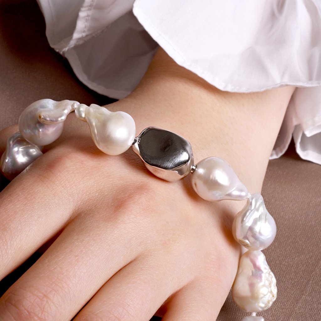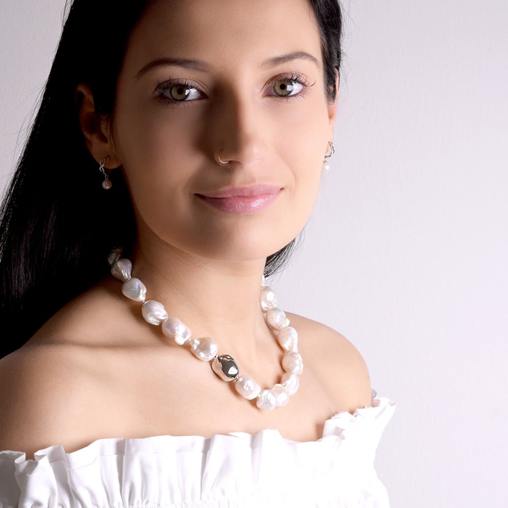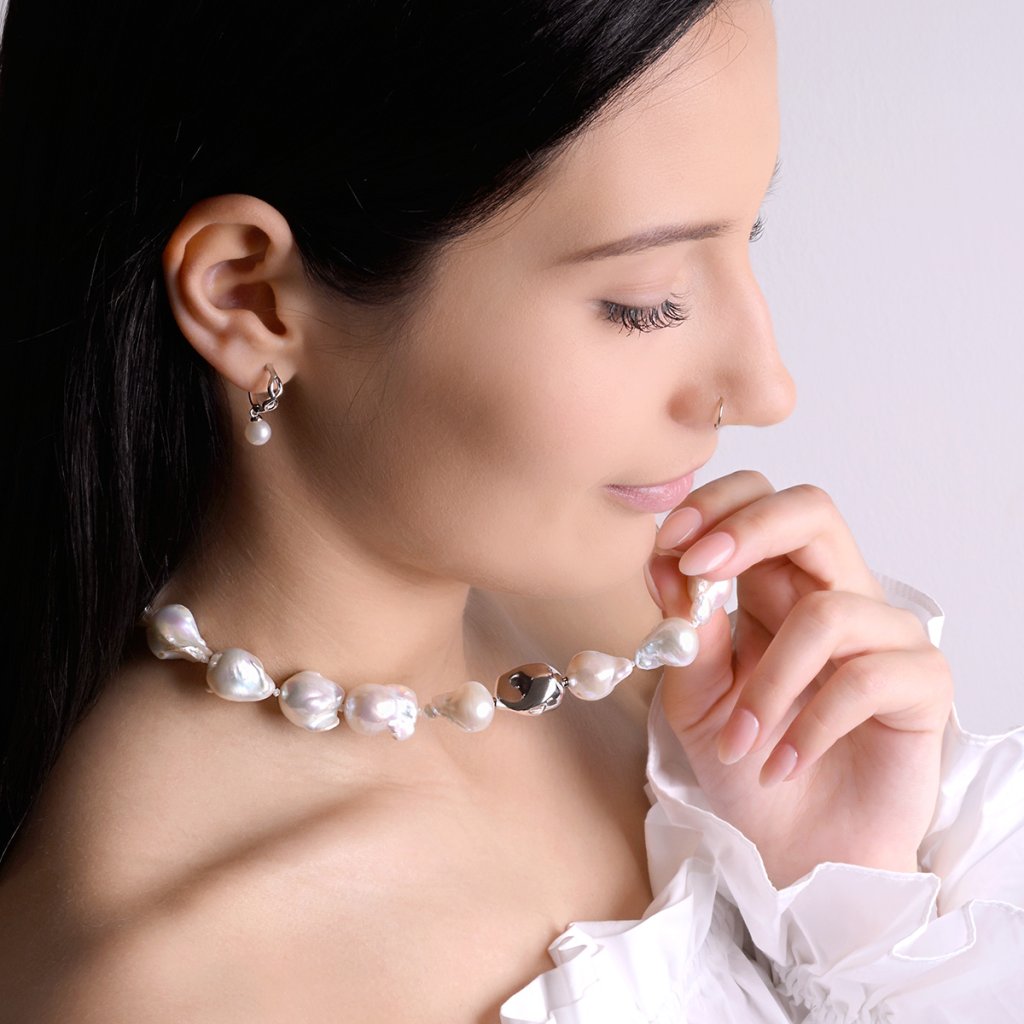 Stříbrný perlový náhrdelník baroko 22061.1