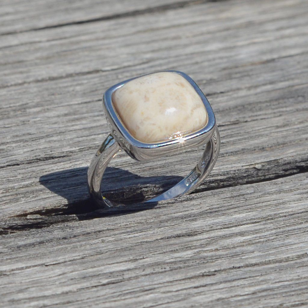 Stříbrný prsten čtverec s fosilním korálem 15029.3