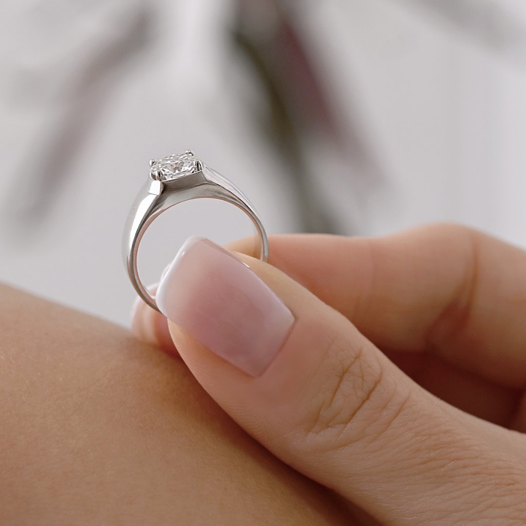 Dominantou prstenu je moissanit – jedinečný drahokam, který v sobě spojuje kouzlo ohně a třpytu. Drahokam vypěstovaný v laboratoři má výjimečnou tvrdost a odolnost, je nepatrně měkčí než diamant a vysoce odolný poškrábání nebo odštípnutí. Moissanit se však třpytí intenzivněji a rozptyluje světlo v duhovém spektru, které zaujme na každém kroku.