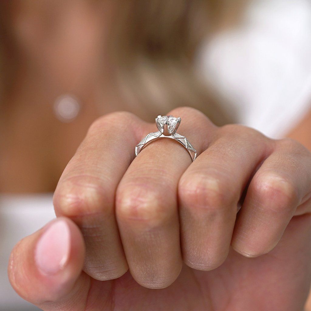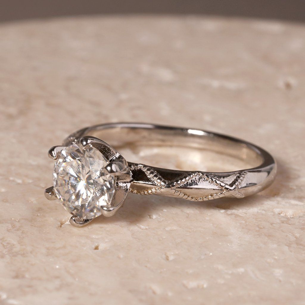 Stříbrný prsten MIA s ornamentem 15M00005 moissanite
