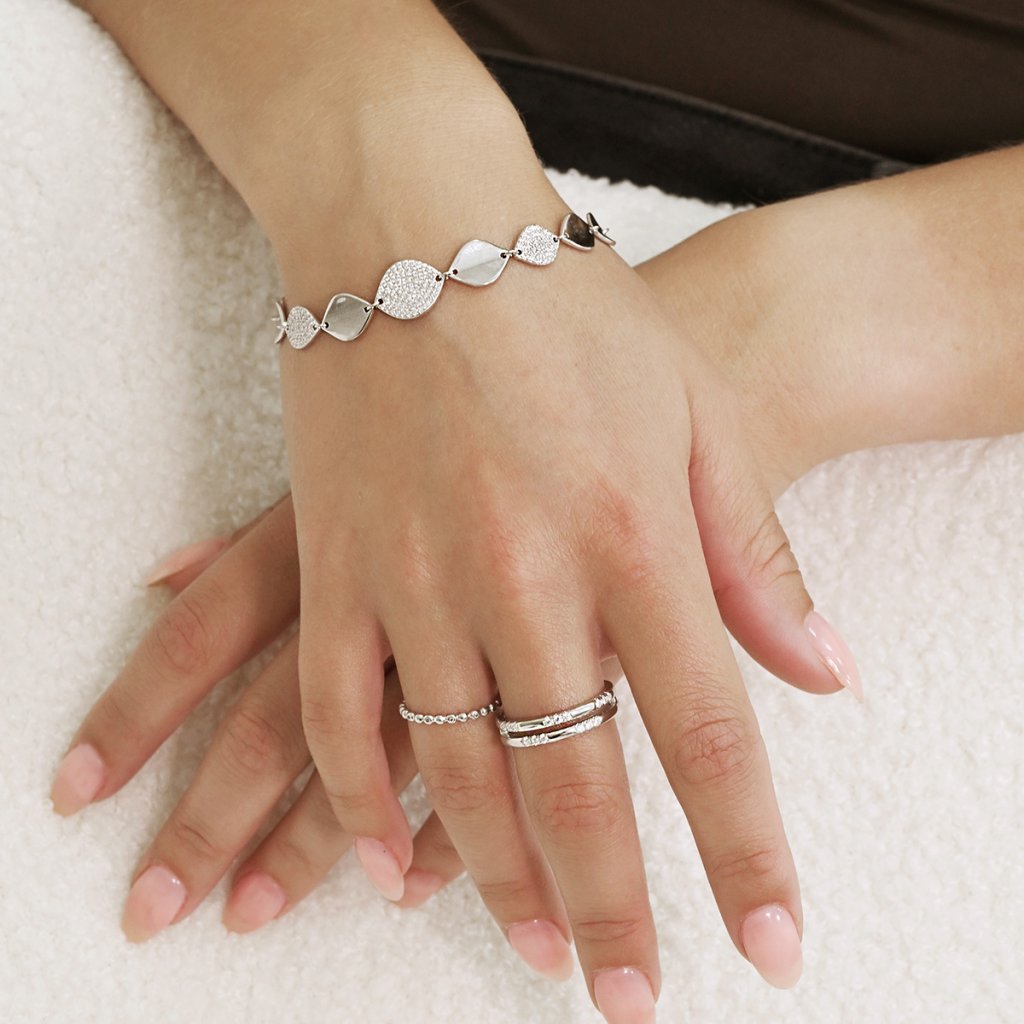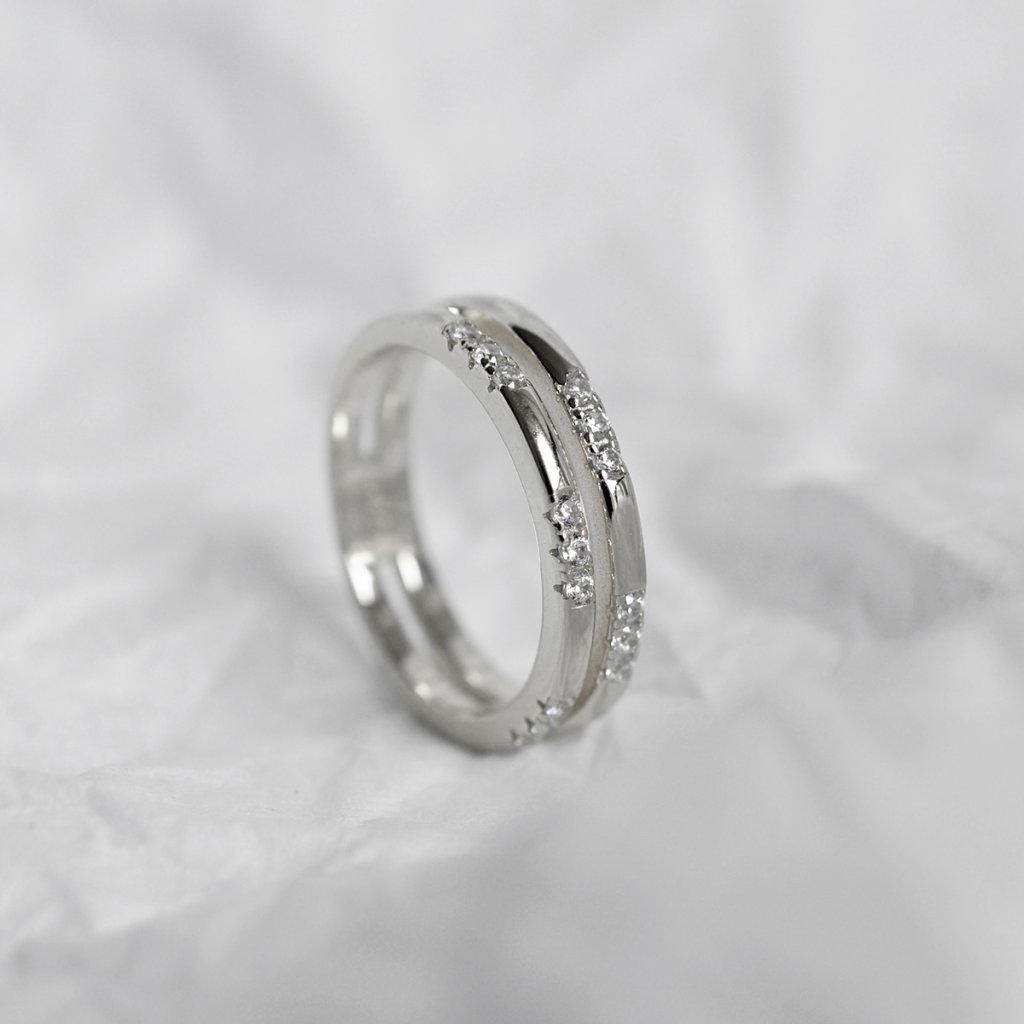 Šperk je vyroben ze stříbra ryzosti 925/1000. Na jeho povrchu je vrstva rhodia, která jej chrání před zčernáním a zajišťuje jeho dlouhotrvající lesk. Prsten je zdobený čirými krystalky a jeho stříbrný lesk v kombinaci s precizním brusem krystalu působí luxusně. Díky různým velikostem krásně sedne na každému – ideální pro každodenní nošení i speciální příležitosti.