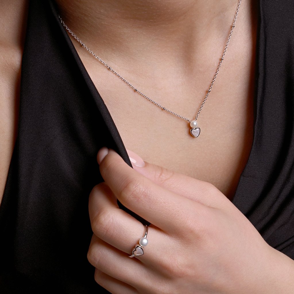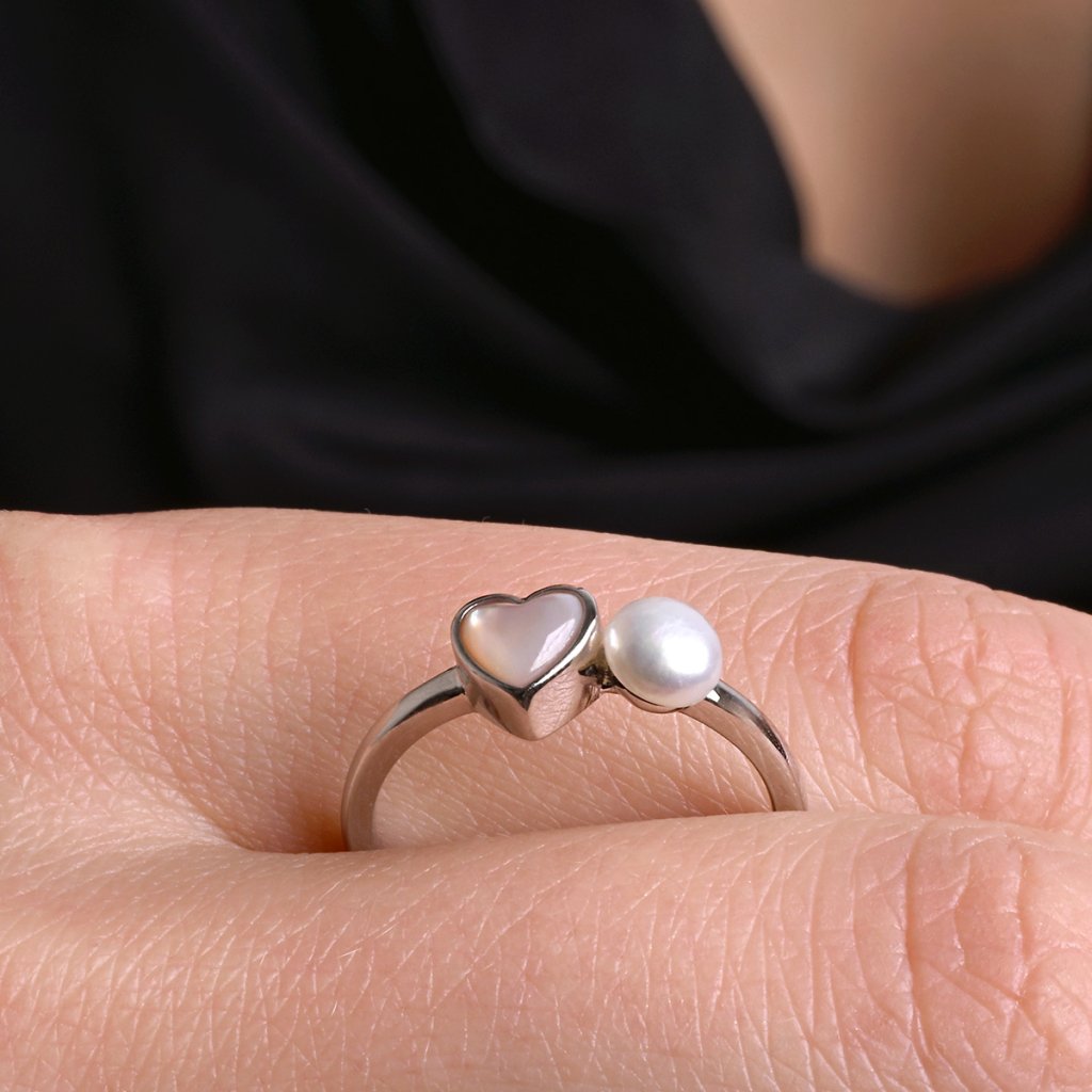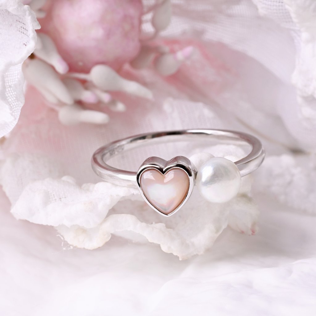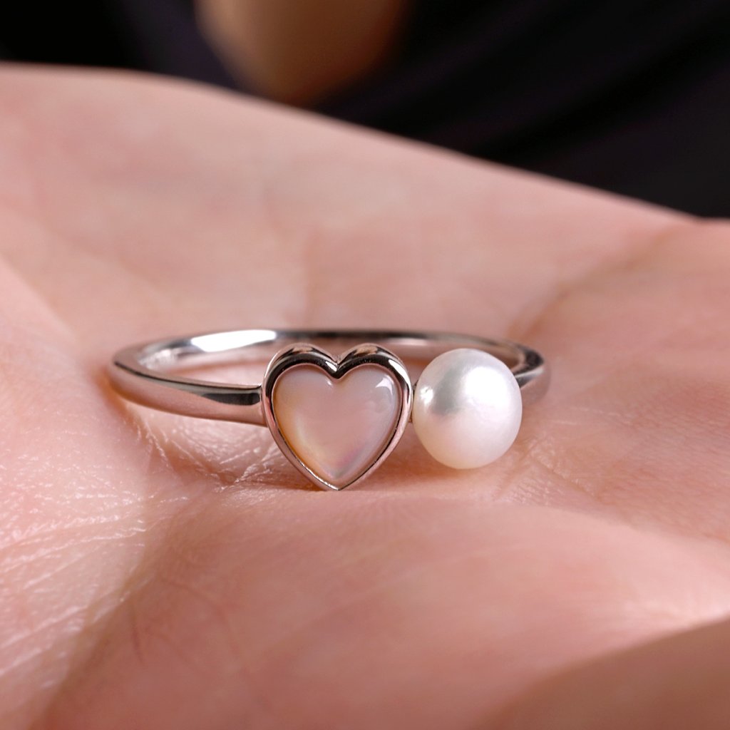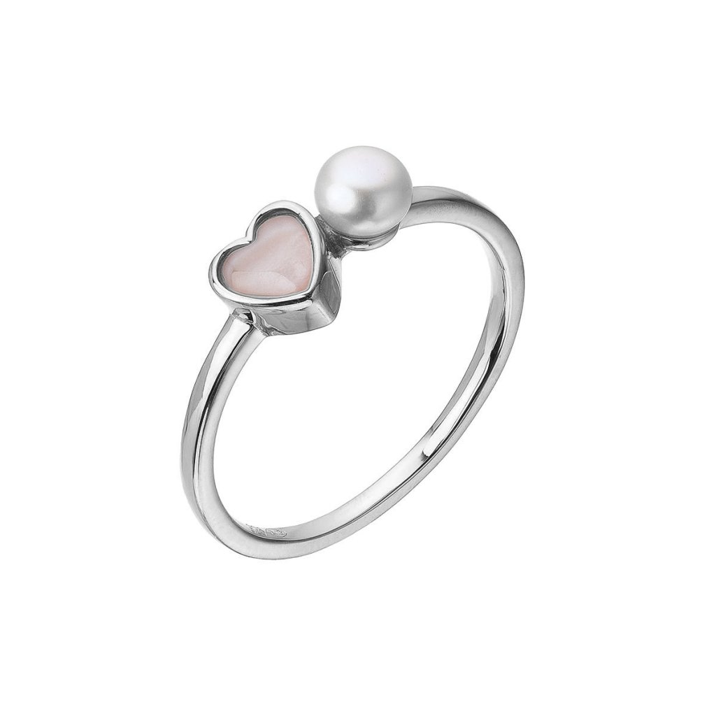 Stříbrný prsten s říční perlou a srdcem 25004.1