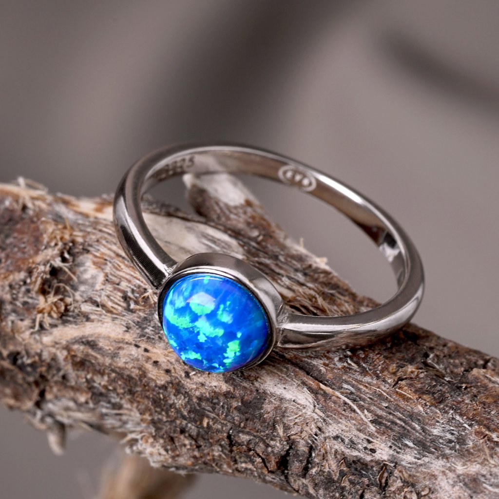 Parametry stříbrného prstenu se syntetickým opálem modrý kulatý 15001.3 blue