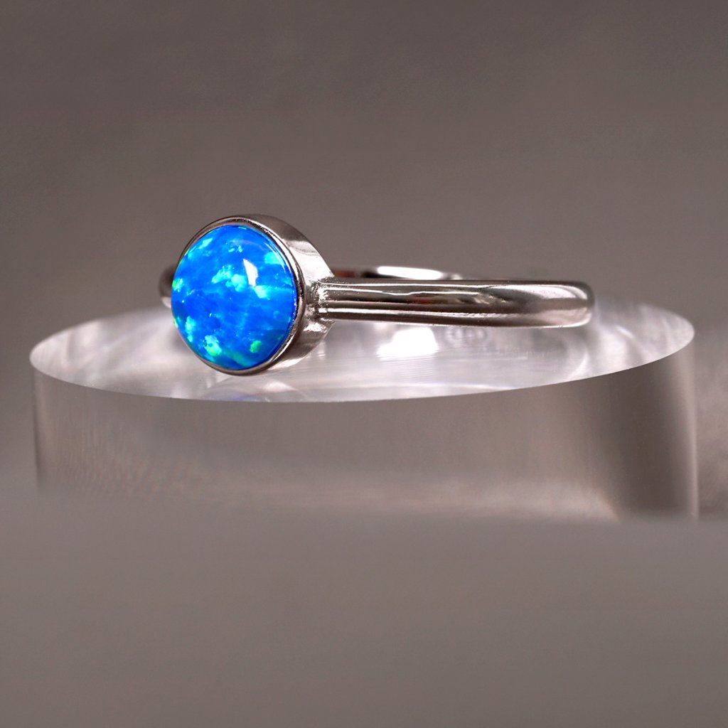 Stříbrný prsten se syntetickým opálem modrý kulatý 15001.3
