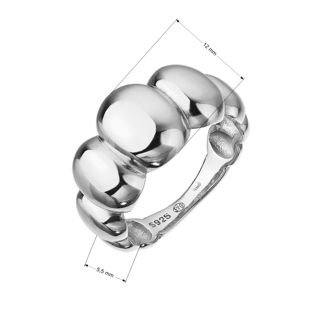 Moderní stříbrný prsten s výrazným zaobleným designem a zrcadlovým leskem. Nadčasový doplněk, který rozzáří každý styl a okamžitě upoutá pozornost. Lesklý povrch a trendy tvar dodávají šperku elegantní, ale současně odvážný vzhled. Perfektní volba pro ženy, které milují styl a originalitu.