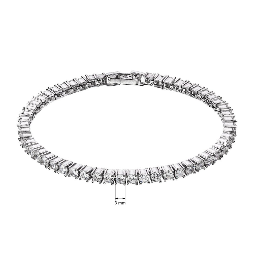 Tenisový náramek - jeden z nejelegantnějších šperků, který si můžete dopřát. Náramek je charakteristický nepřetržitým řetězem kamenů, v tomto případě třpytivých zirkonů, které jsou vsazeny do základu ze stříbra ryzosti 925/1000. Kulaté zirkony o velikosti 3 mm vytvoří fascinující světelnou symfonii na vašem zápěstí.