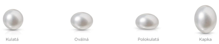 - Tvar. Perfektně kulaté perly jsou vzácné, většina má jemné odchylky. Tvary se různí – Popis obrázku (pro vynechání smažte)od klasických kulatých po ovály nebo kapky.