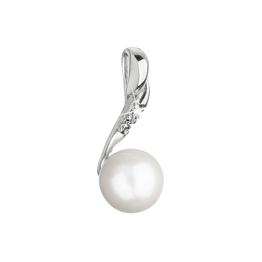Zlatý 14 karátový přívěsek bílé zlato s říční perlou a zirkony 84PZ00007