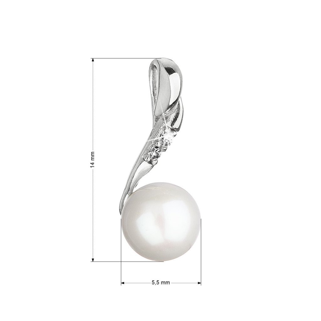 Přívěsek 84PZ00007 je vyroben ze 14karátového bílého zlata s ryzostí 585/1000 lehce přizdobený zirkony s krásnou kulatou říční perlou té nejvyšší kvality AAA. Šířka perličky je 5,5-6 mm.
