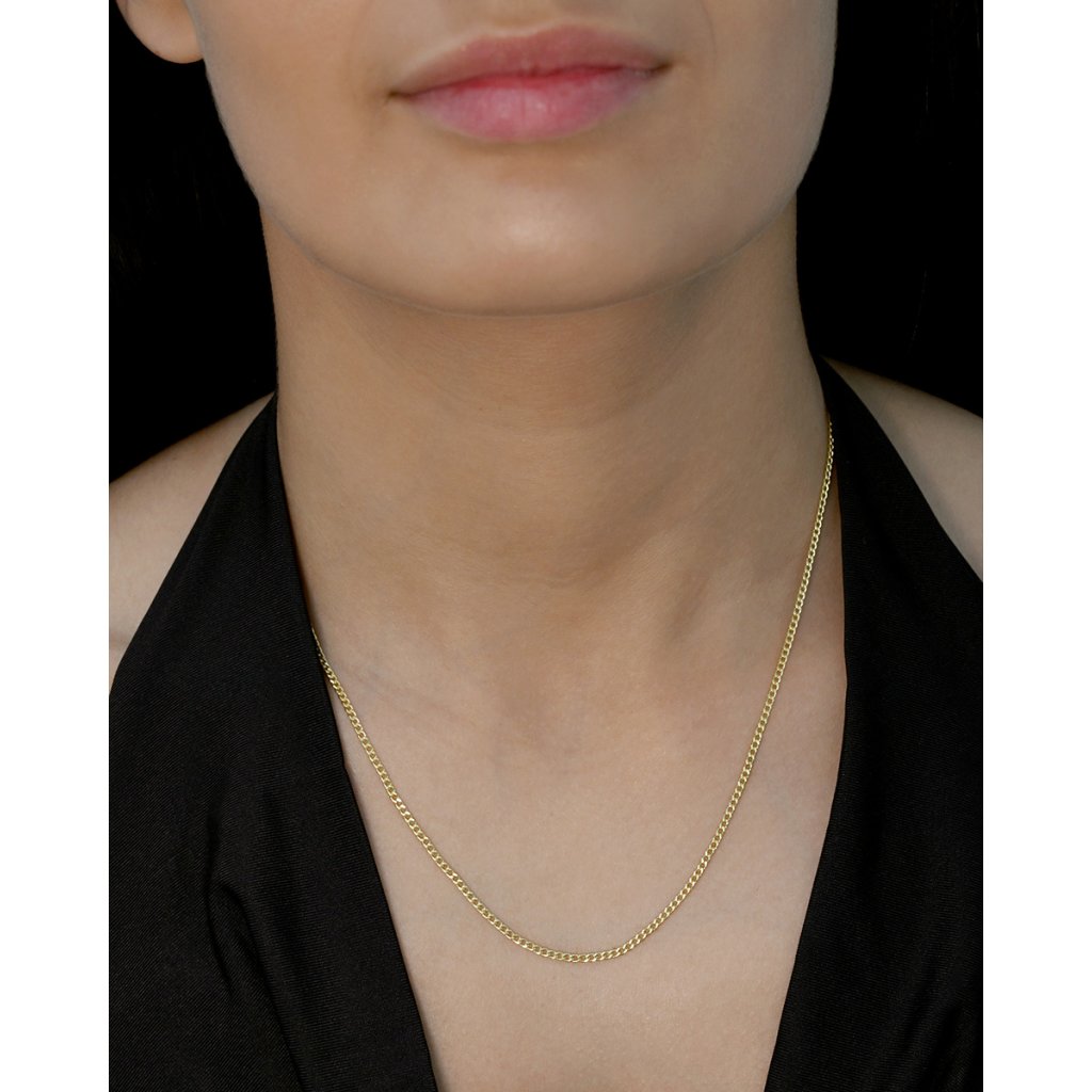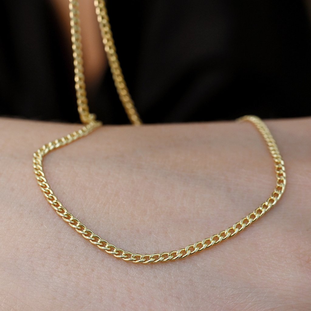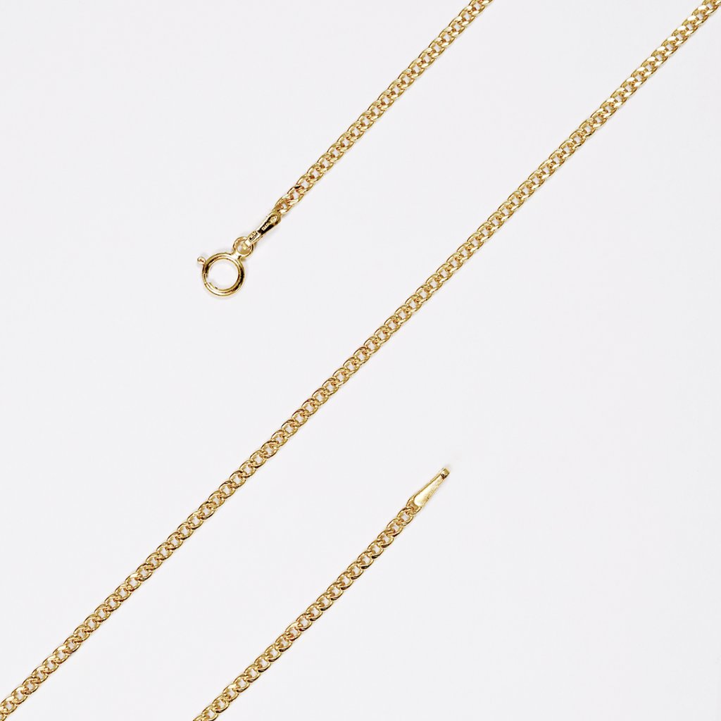 Tenký řetízek vyrobený ze žlutého 14kt zlata. Řetízek tvoří plochá, zbroušená očka, díky kterým se řetízek krásně leskne. Sluší mu zejména drobné minimalistické přívěsky.