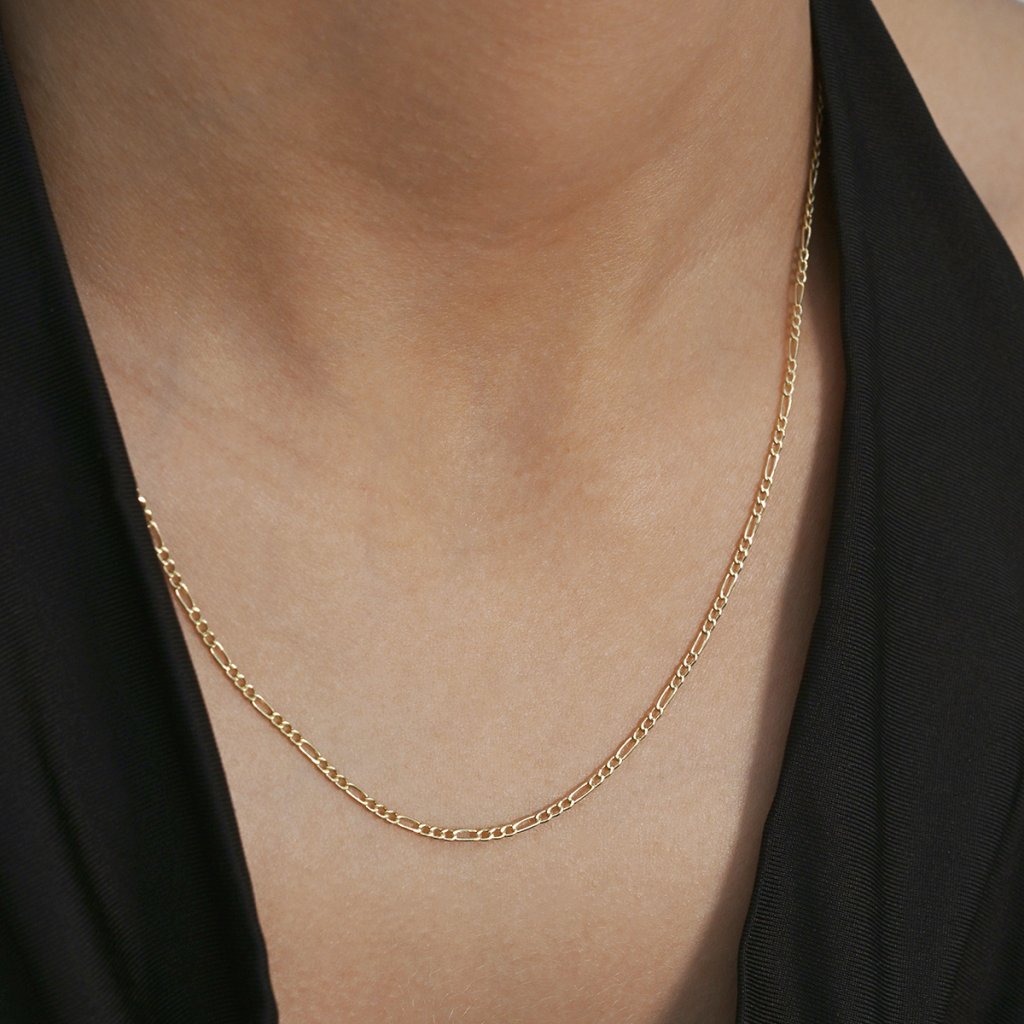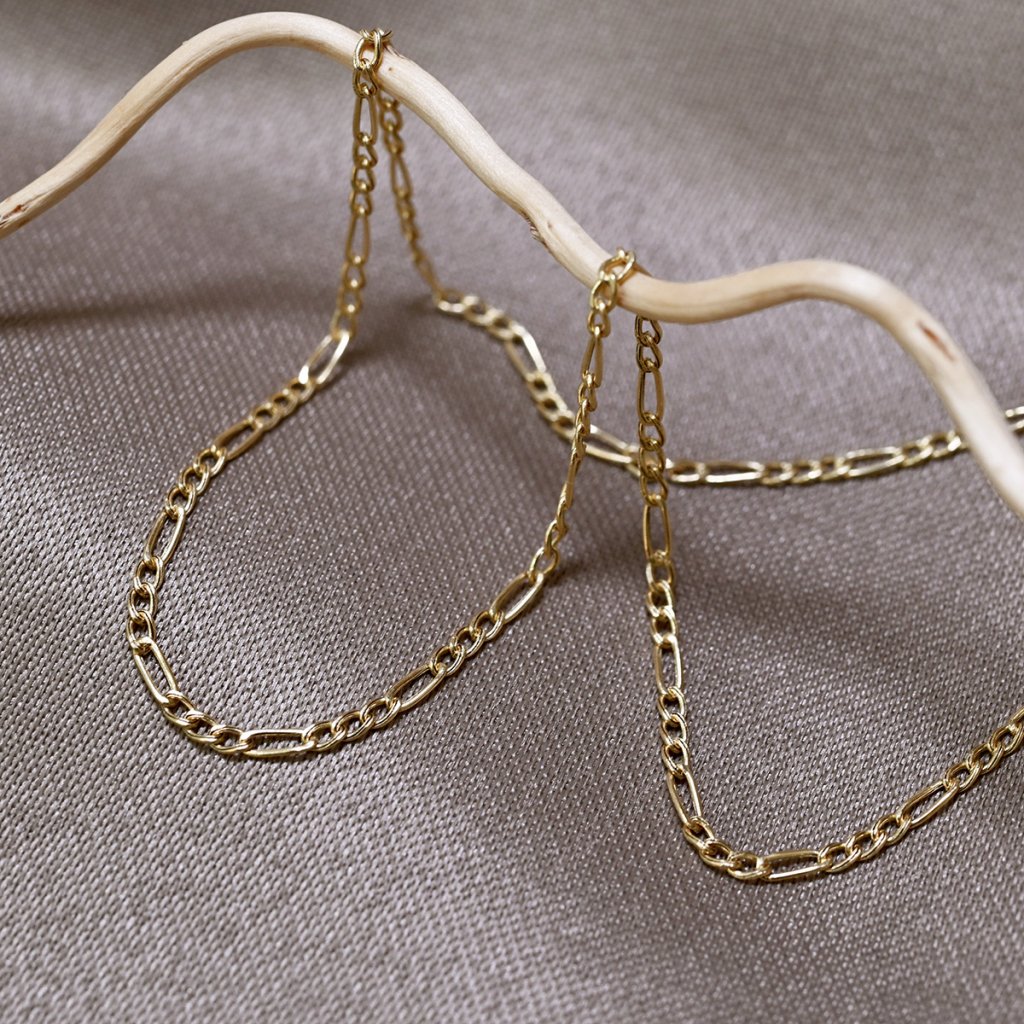 Tenký řetízek vyrobený ze žlutého 14kt zlata. Řetízek tvoří dva druhy tvarů oček, díky kterým je řetízek velmi elegantní. Sluší mu zejména drobné minimalistické přívěsky.