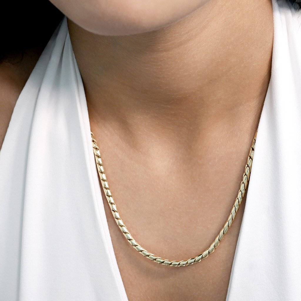 Elegantní zlatý řetízek vyniká svou jednoduchou krásou a nadčasovostí. Jemné, precizně zpracované články vytvářejí plynulou linii, která působí luxusně, ale zároveň nenuceně. Díky tomu je řetízek vhodný jak pro každodenní nošení, tak i pro slavnostní příležitosti.